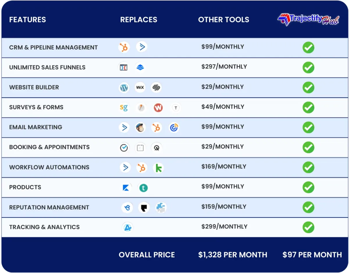 “Before TrajectifyHub, I was constantly logging into 4-5 platforms to manage leads, send emails, and keep track of clients. Now I have one login, one dashboard, and one powerful system that handles it all. I even closed 3 new clients within my first week of switching over.”