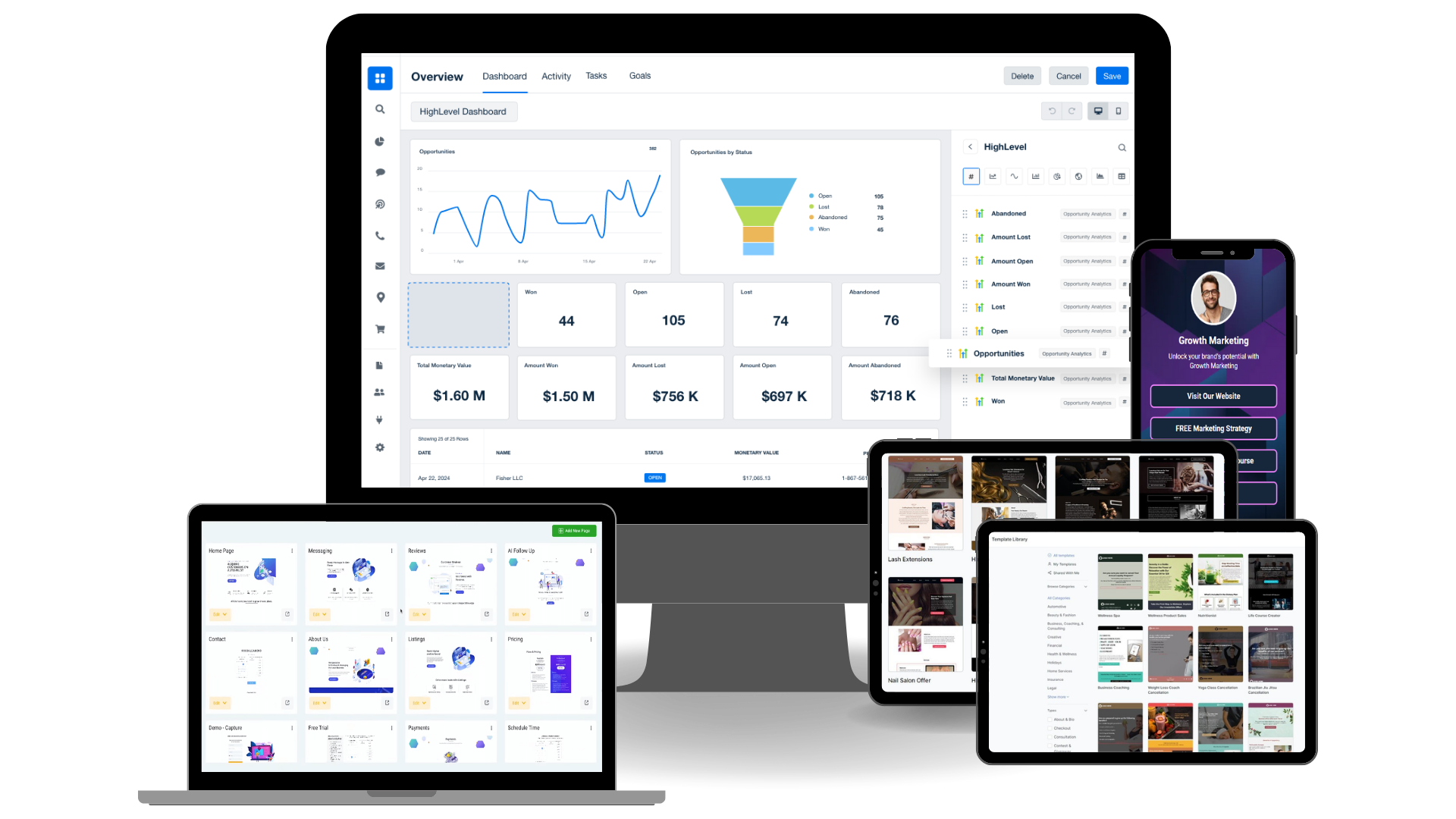 Isang Dashboard, Lahat Sa Isang Lugar: Dito mo na makikita lahat ng tools mo - CRM, emails, funnels, websites, automations, at marami pang iba.